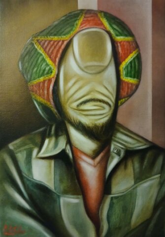 La Metamorfosi del Mito: L’artista supera il concetto di somiglianza estetica per approdare a una sintesi spirituale. Il dettaglio del cappello e del pizzetto, innestati sulla fisionomia del dito, non sono semplici attributi decorativi, ma segni distintivi che rendono la figura immediatamente riconoscibile a livello ancestrale. Ciotola spoglia il mito della sua carne per restituirci la sua vibrazione più pura: il ritmo della libertà e l’essenza della cultura reggae.